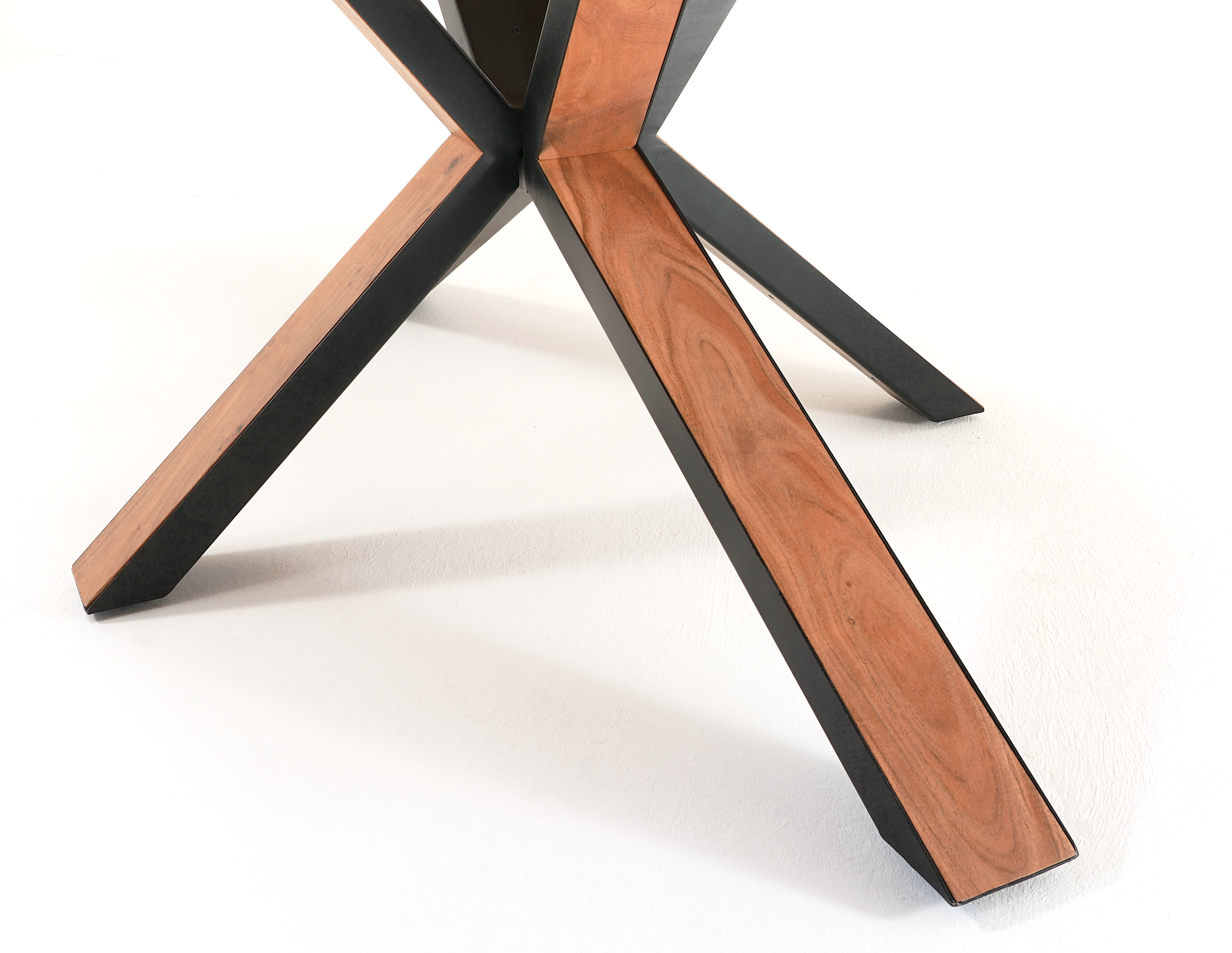 Piètement : métal finition époxy ton noir mat avec détails en acacia massif (Vietnam)