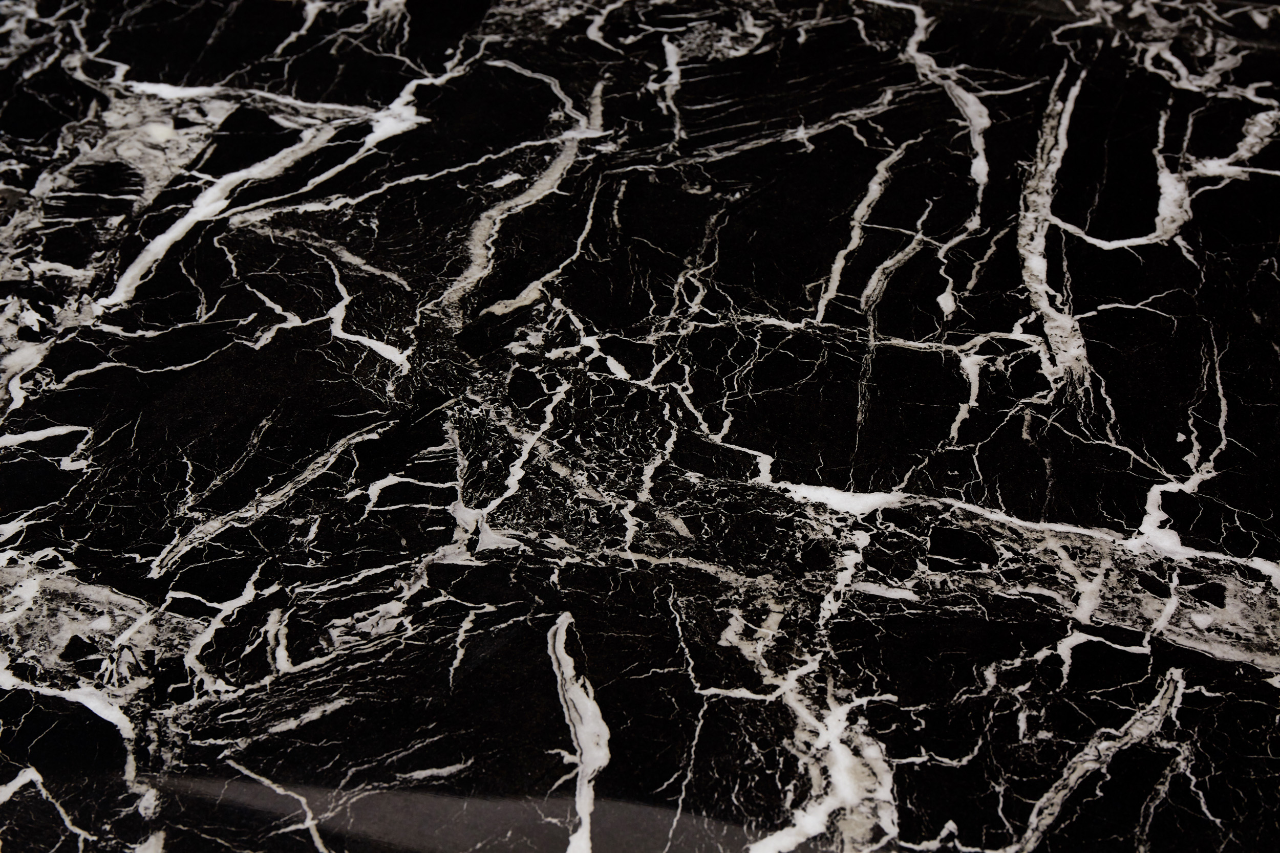 Plateau de table : verre durci (verre de sécurité) aspect marbre noir