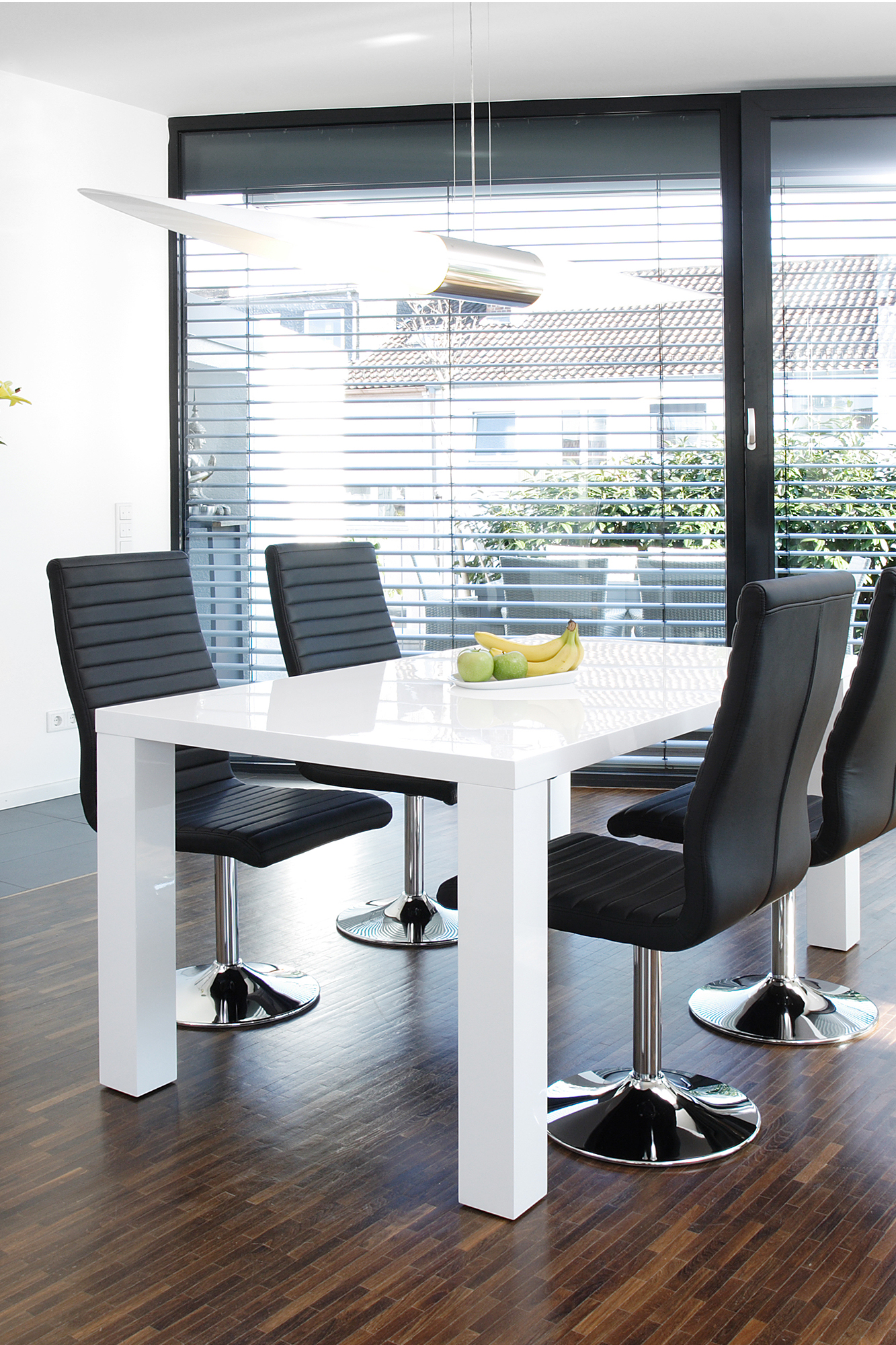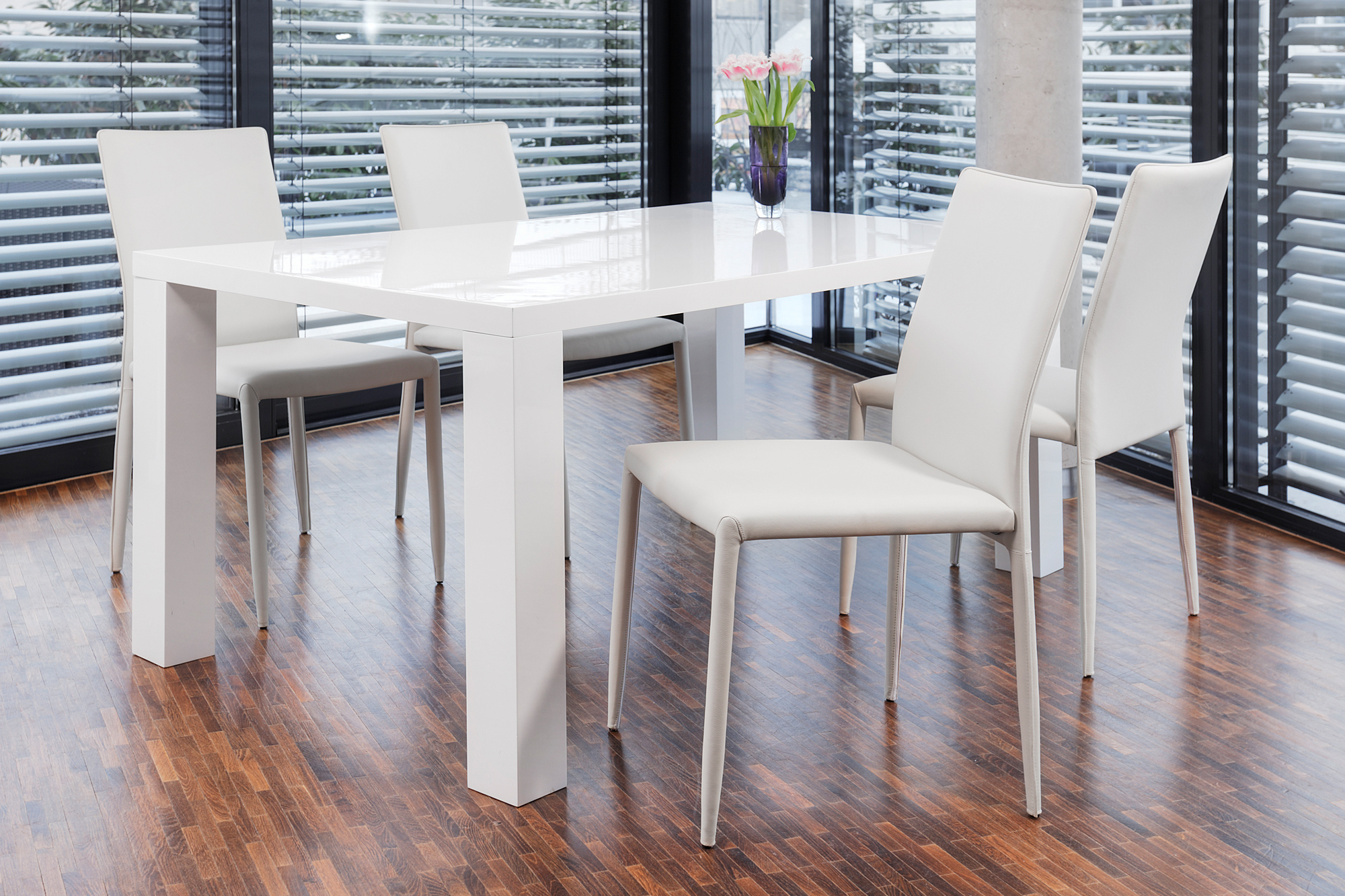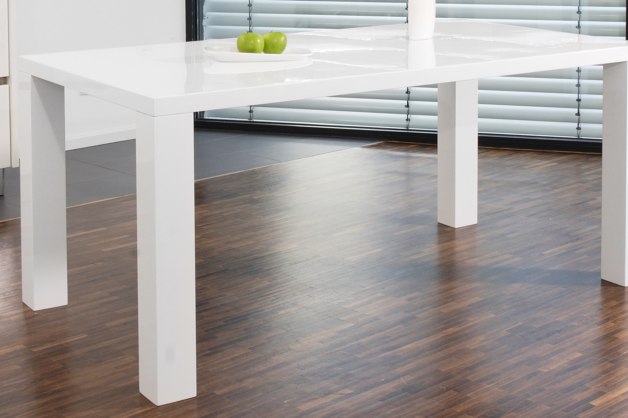 Si vous aimez les meubles aux lignes épurées, vous allez adorer cette table à dîner. Cette table conférera à votre salle à manger ou à votre cuisine l'éclat qu'elle mérite. La table est fabriquée en bois MDF. Grâce au vernis ultra brillant ton blanc, les formes aux lignes claires sont joliment mises en valeur. Les quatre pieds ne sont pas seulement ultra larges : ils confèrent aussi à la table une excellente stabilité. La table de salle à manger ne constitue pas seulement un espace pratique pour prendre le repas : c'est également un lieu de rencontre pour les soirées jeux entre amis ou en famille.
