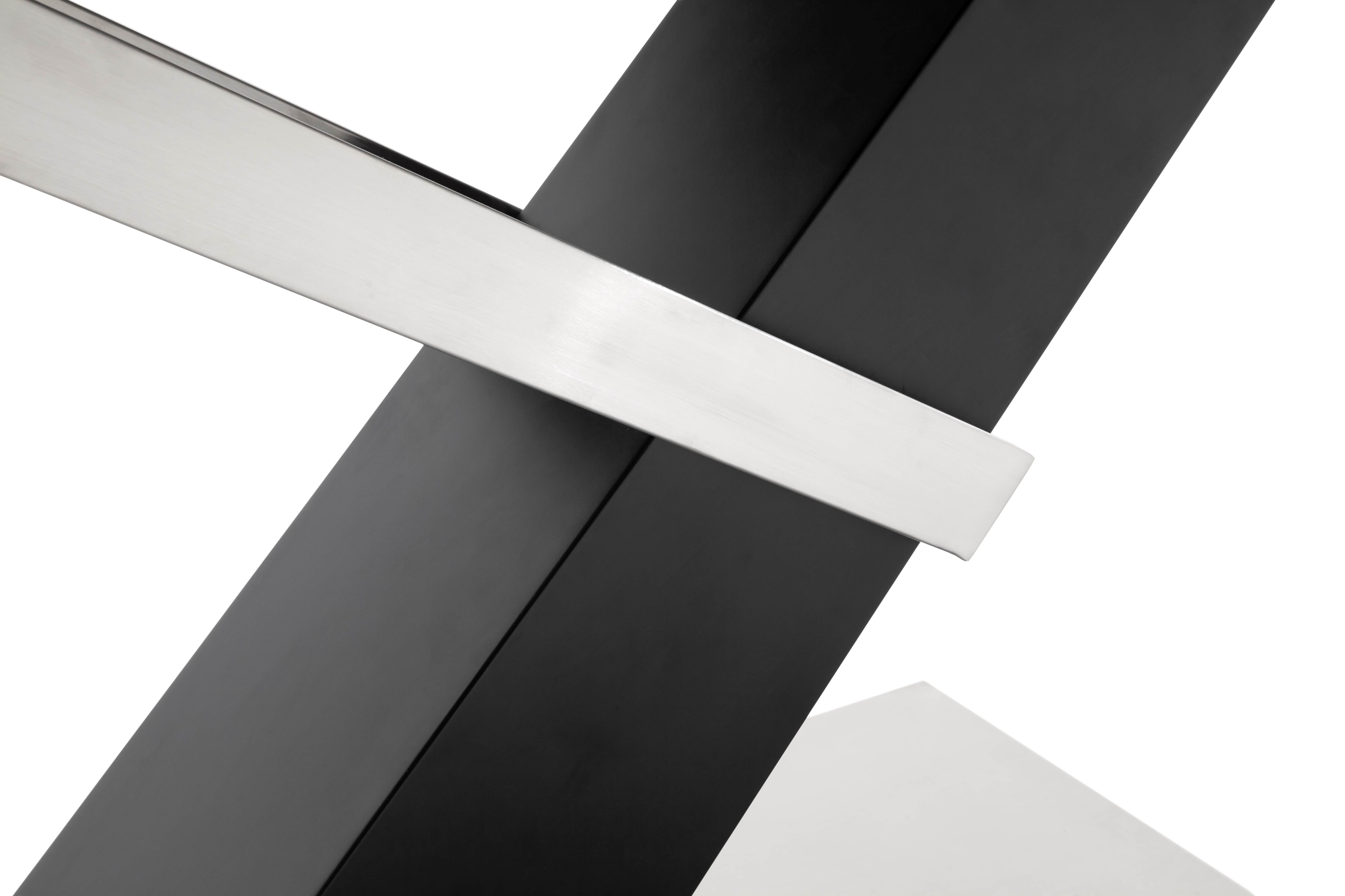 Colonne : MDF (panneau de fibres de bois de densité moyenne) laqué ton noir mat et inox brossé