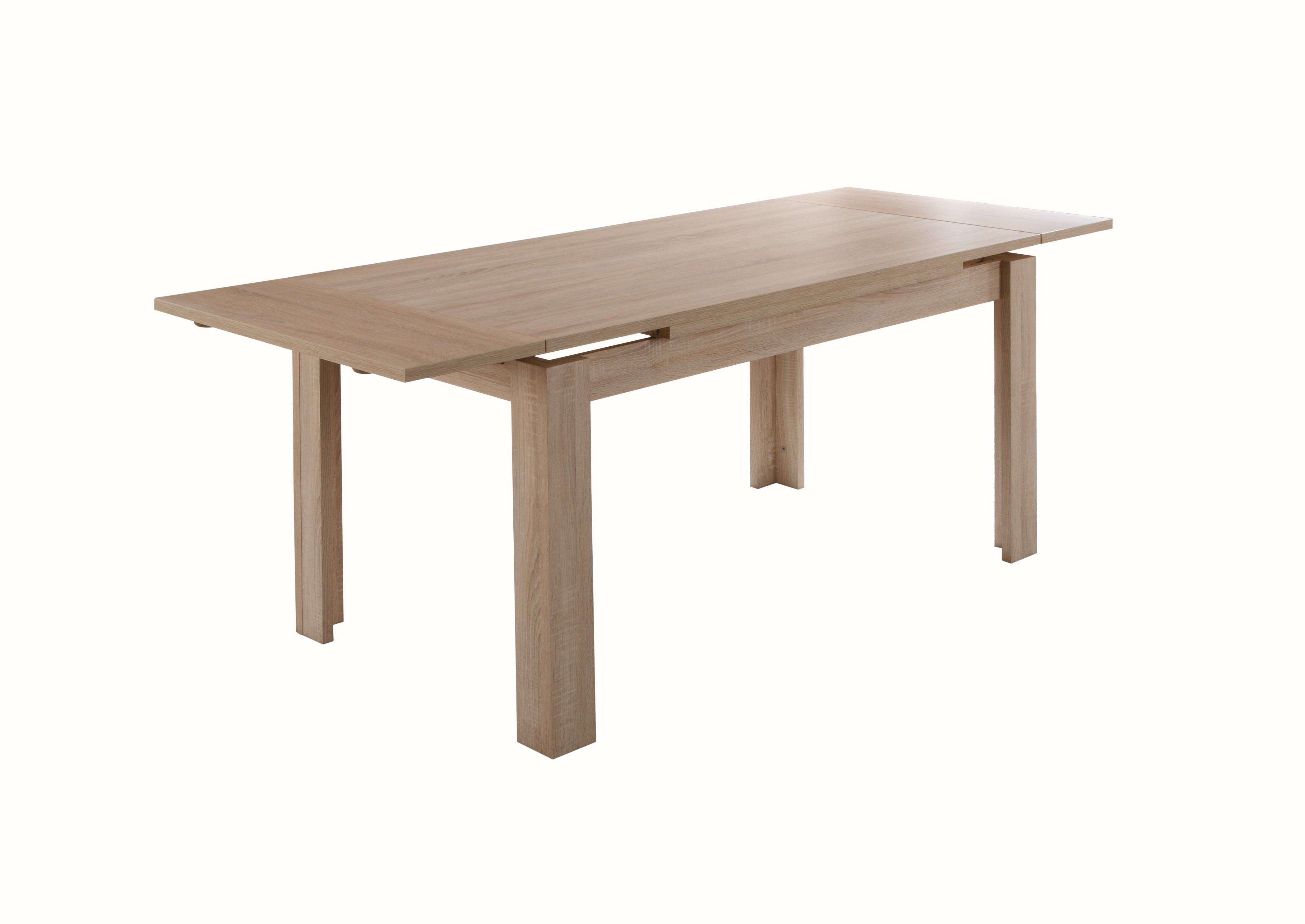 extensible ; les rallonges sont extraites de dessous le plateau de table : ce dernier s'abaisse pour se mettre à la même hauteur que les rallonges