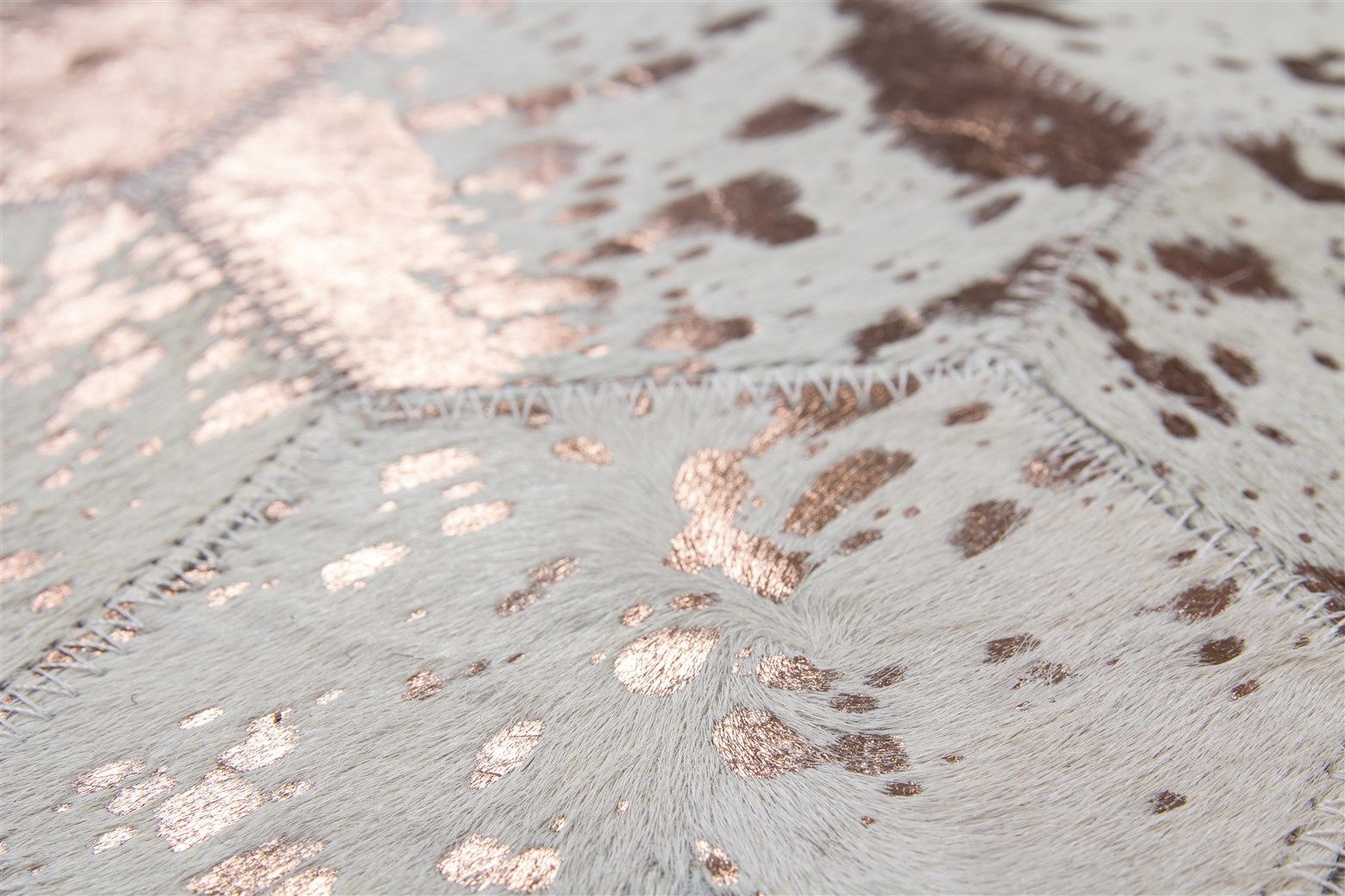Ce superbe tapis en cuir avec détails incrustés dans un film métallisé apportera la touche finale à un intérieur luxueux. Cet élégant tapis de qualité 100 % cuir imprime une touche individuelle à la pièce tout en lui conférant un charme inimitable. Fabriqué à la main, chaque tapis en cuir est une pièce unique. L’utilisation de matériaux nobles et la finition de qualité créent un effet dynamique et font de chaque tapis un modèle unique : en effet, en raison des caractéristiques naturelles, la forme, la couleur et le motif peuvent varier jusqu’à 30 % par rapport au modèle original. En cas d’utilisation intensive et après un certain temps, il est possible que ce tapis perde des poils. De même, le film métallisé peut se détacher dans certaines circonstances. Ceci est dû aux caractéristiques de ce produit naturel : il ne s’agit pas d’un défaut de fabrication.