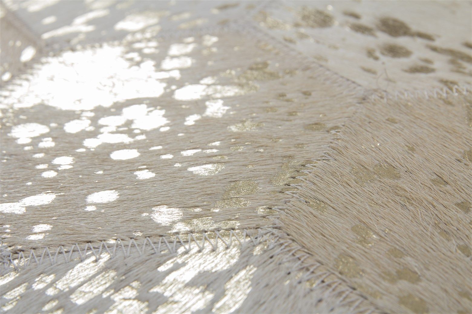 Ce superbe tapis en cuir avec détails incrustés dans un film métallisé apportera la touche finale à un intérieur luxueux. Cet élégant tapis de qualité 100 % cuir imprime une touche individuelle à la pièce tout en lui conférant un charme inimitable. Fabriqué à la main, chaque tapis en cuir est une pièce unique. L’utilisation de matériaux nobles et la finition de qualité créent un effet dynamique et font de chaque tapis un modèle unique : en effet, en raison des caractéristiques naturelles, la forme, la couleur et le motif peuvent varier jusqu’à 30 % par rapport au modèle original. En cas d’utilisation intensive et après un certain temps, il est possible que ce tapis perde des poils. De même, le film métallisé peut se détacher dans certaines circonstances. Ceci est dû aux caractéristiques de ce produit naturel : il ne s’agit pas d’un défaut de fabrication.