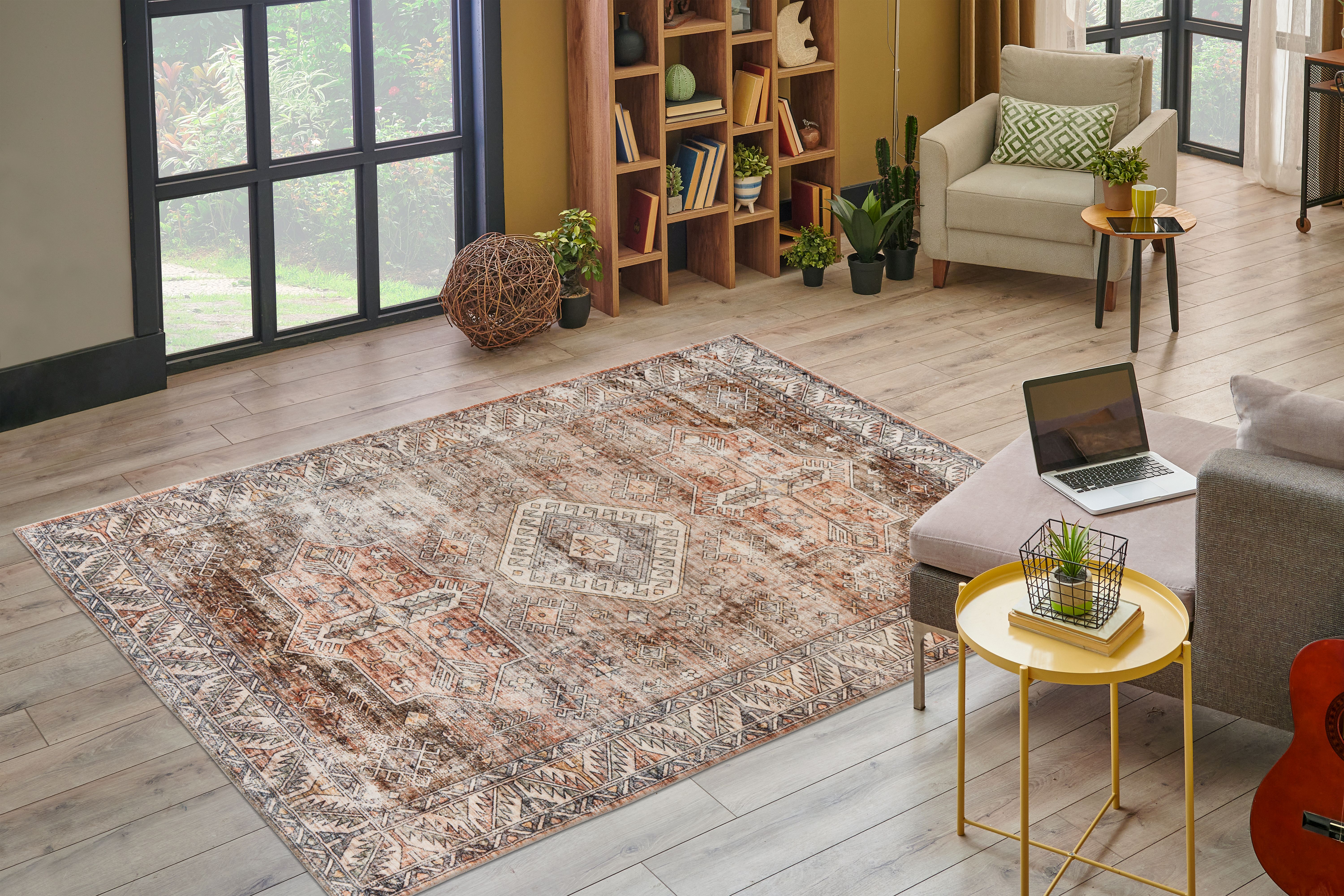 Ce tapis individuel se décline en différents motifs et tailles. Grâce à une impression numérique soignée, ce tapis tissé à la machine séduit par son esthétique remarquable. Avec son style vintage tendance et ses dimensions variées, il s’adapte à toutes les pièces et deviendra le point fort de votre décoration intérieure !