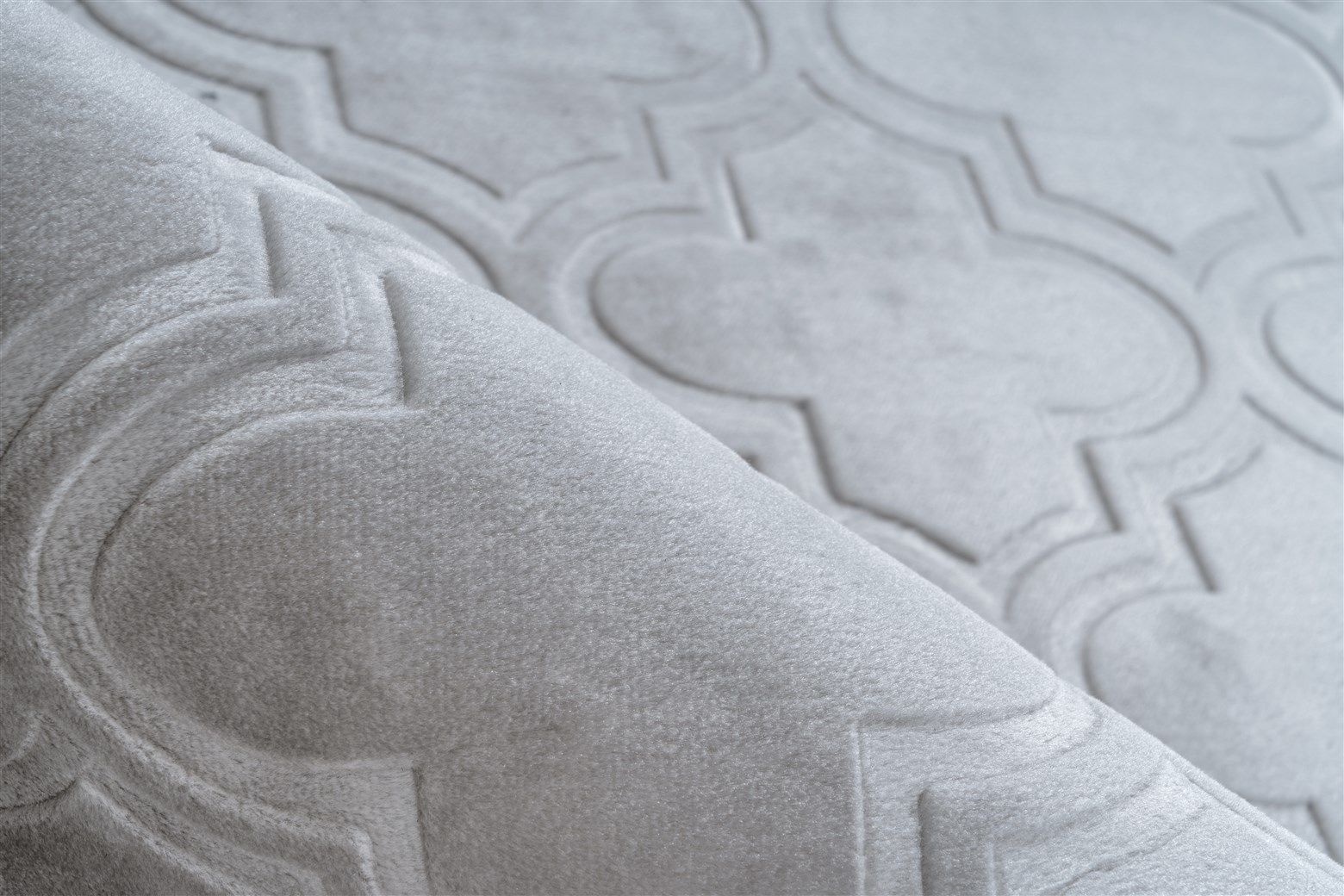 Ce tapis mettra superbement en valeur votre intérieur. Son velours uni et moelleux est orné d’un imprimé en relief qui crée un effet bicolore et un rendu 3D unique. L’alternance de fibres hautes et basses en relief conférent au tapis une apparence élégante. Un bord ourlé sur tout le pourtour complète le design harmonieux en évitant tout risque d’effilochage. Le style raffiné de ce tapis s’intègre parfaitement dans tous les styles d’intérieurs et créera une ambiance chaleureuse et accueillante dans vos pièces de vie. Sa texture imitant la douceur du pelage de lapin en fait un tapis particulièrement moelleux et confortable. Grâce à ses pastilles antidérapantes au dos, le tapis reste bien en place, évitant tout glissement fâcheux. Il est ainsi idéal comme descente de lit et permet de profiter d’une sensation agréable sous les pieds dès le réveil. Il est également parfait pour créer une atmosphère conviviale devant une cheminée.