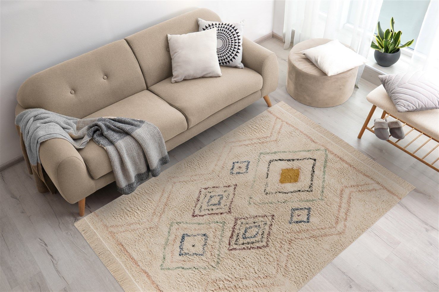 Ce tapis à poils ras mettra joliment en valeur votre intérieur. Son design est sobre, discret et indémodable. Les teintes claires et lumineuses apporteront une touche de fraîcheur à votre pièce tout en créant une atmosphère chaleureuse. Ce tapis raffiné se marie parfaitement avec des coussins ou des plaids pour une décoration harmonieuse. Facile d’entretien et robuste, ce tapis est idéal pour les familles avec enfants ou animaux de compagnie. Il peut également être utilisé dans des pièces équipées de chauffage au sol. Grâce à sa fabrication de qualité et à sa composition 100 % coton, les taches éventuelles peuvent être éliminées sans difficulté. Notez que la couleur réelle du tapis peut varier en fonction de l’éclairage. La direction des fibres du velours moelleux peut également influencer les nuances de couleur.