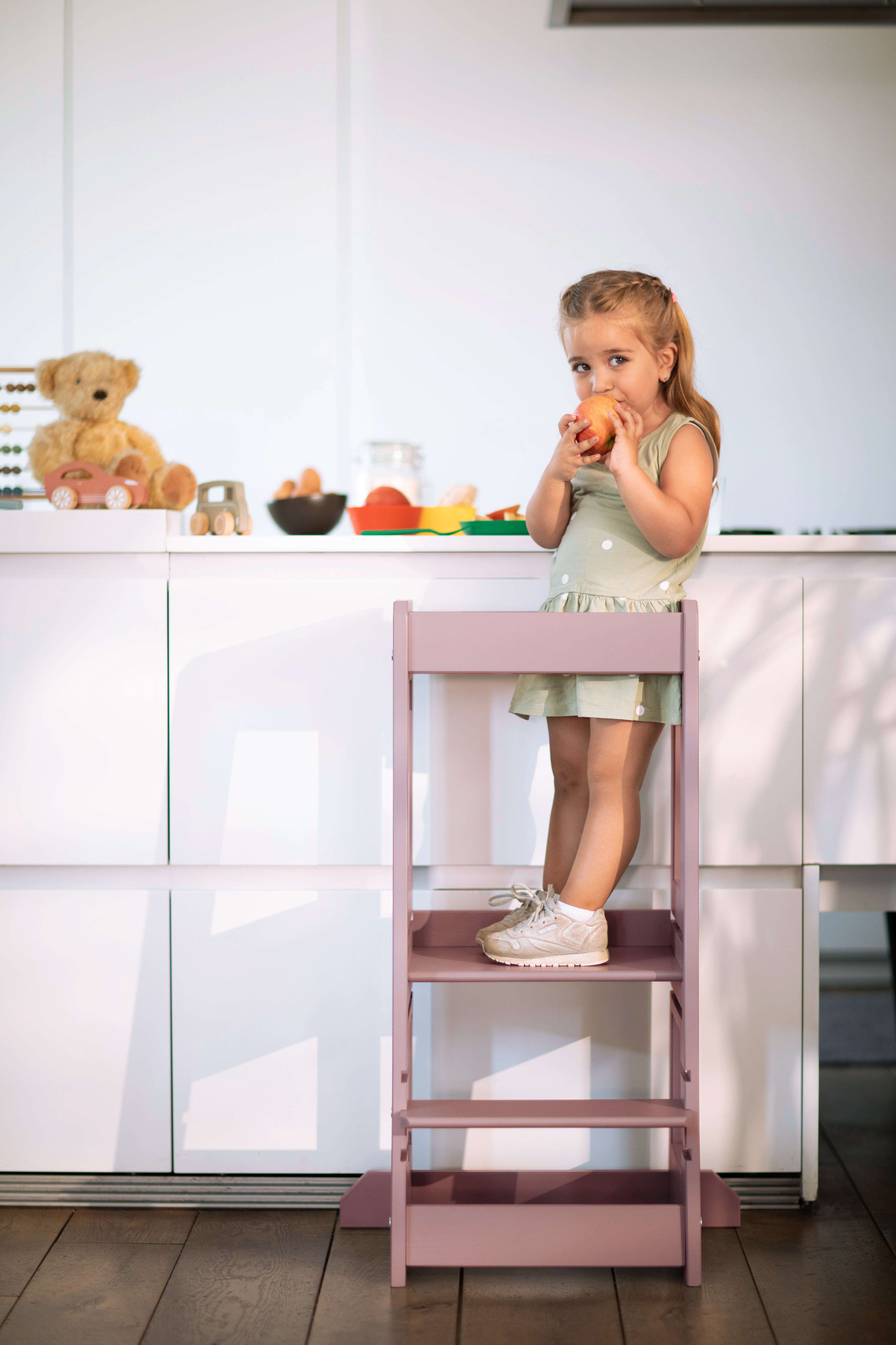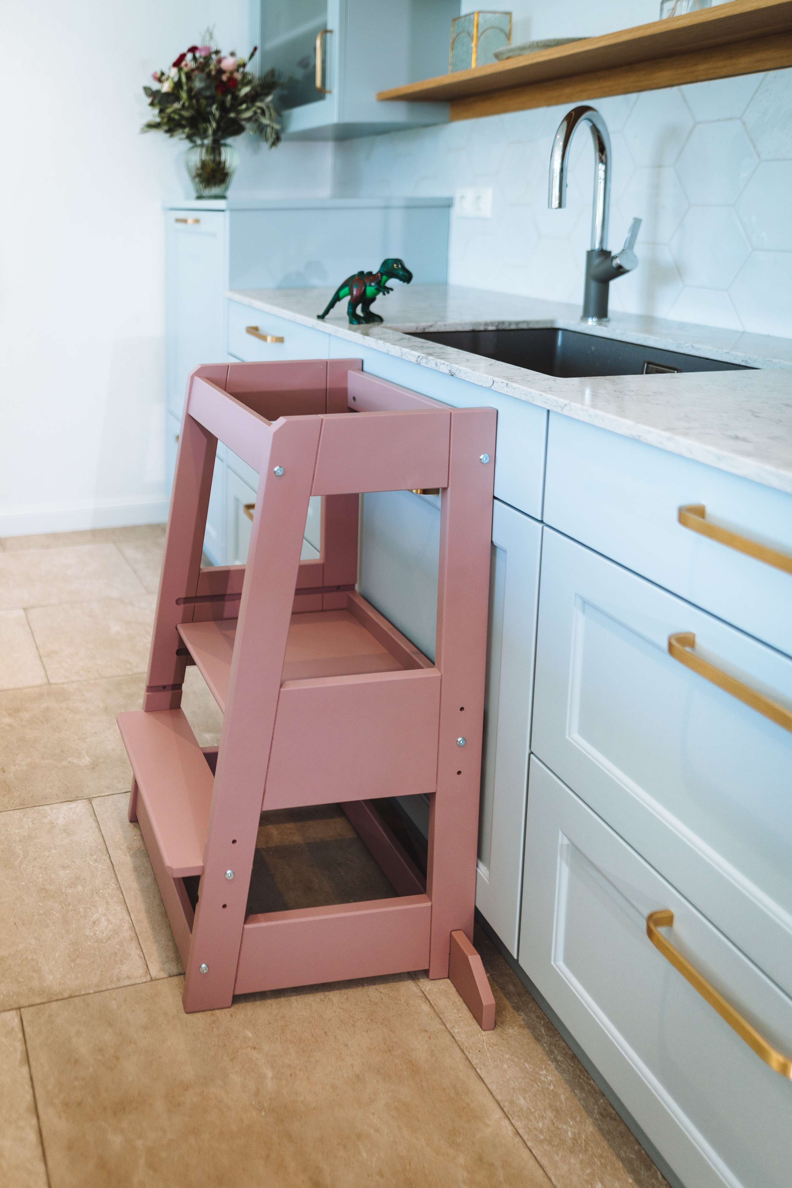 Un modèle évolutif : les tout-petits peuvent ainsi être à hauteur de plan de travail et aider dans la cuisine