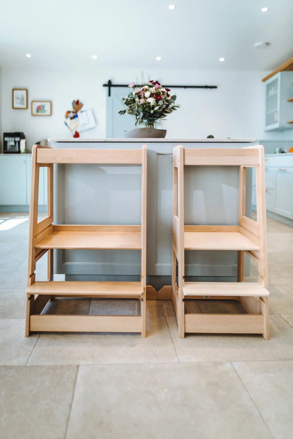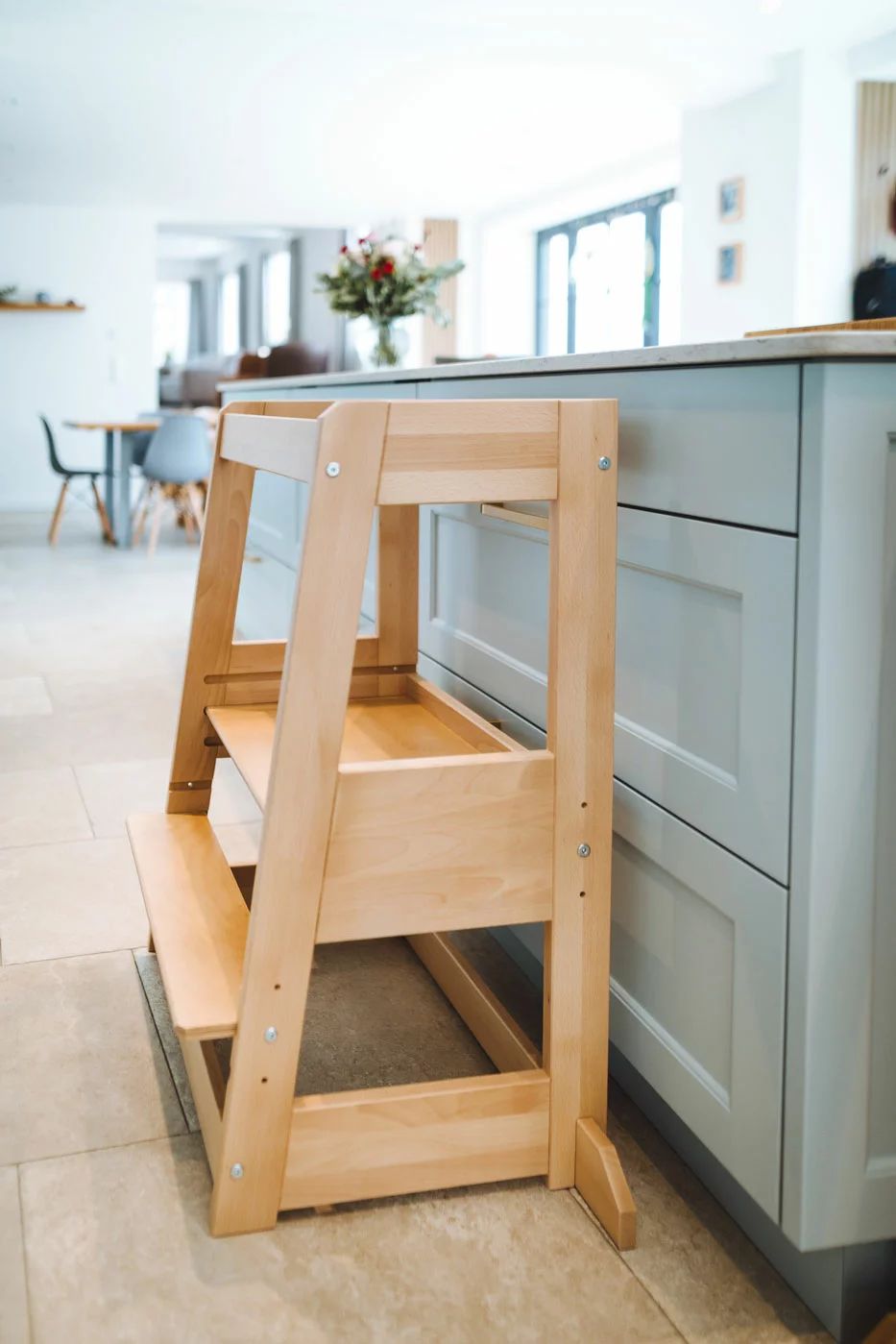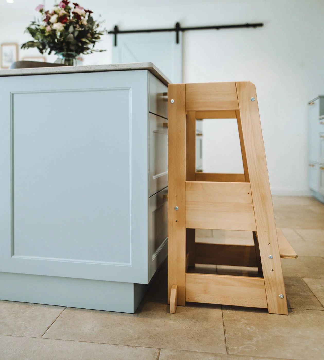 Un modèle évolutif : les tout-petits peuvent ainsi être à hauteur de plan de travail et aider dans la cuisine