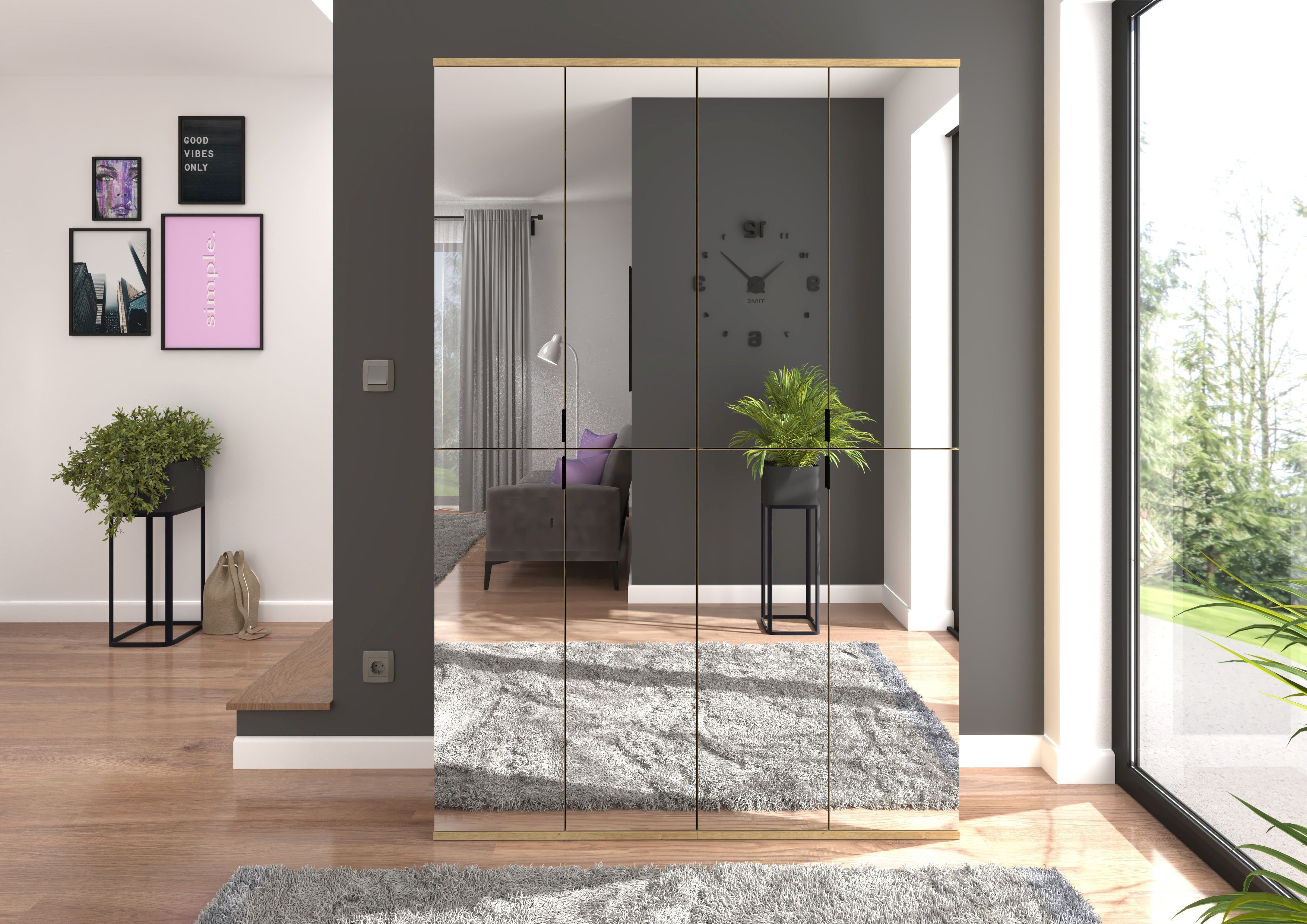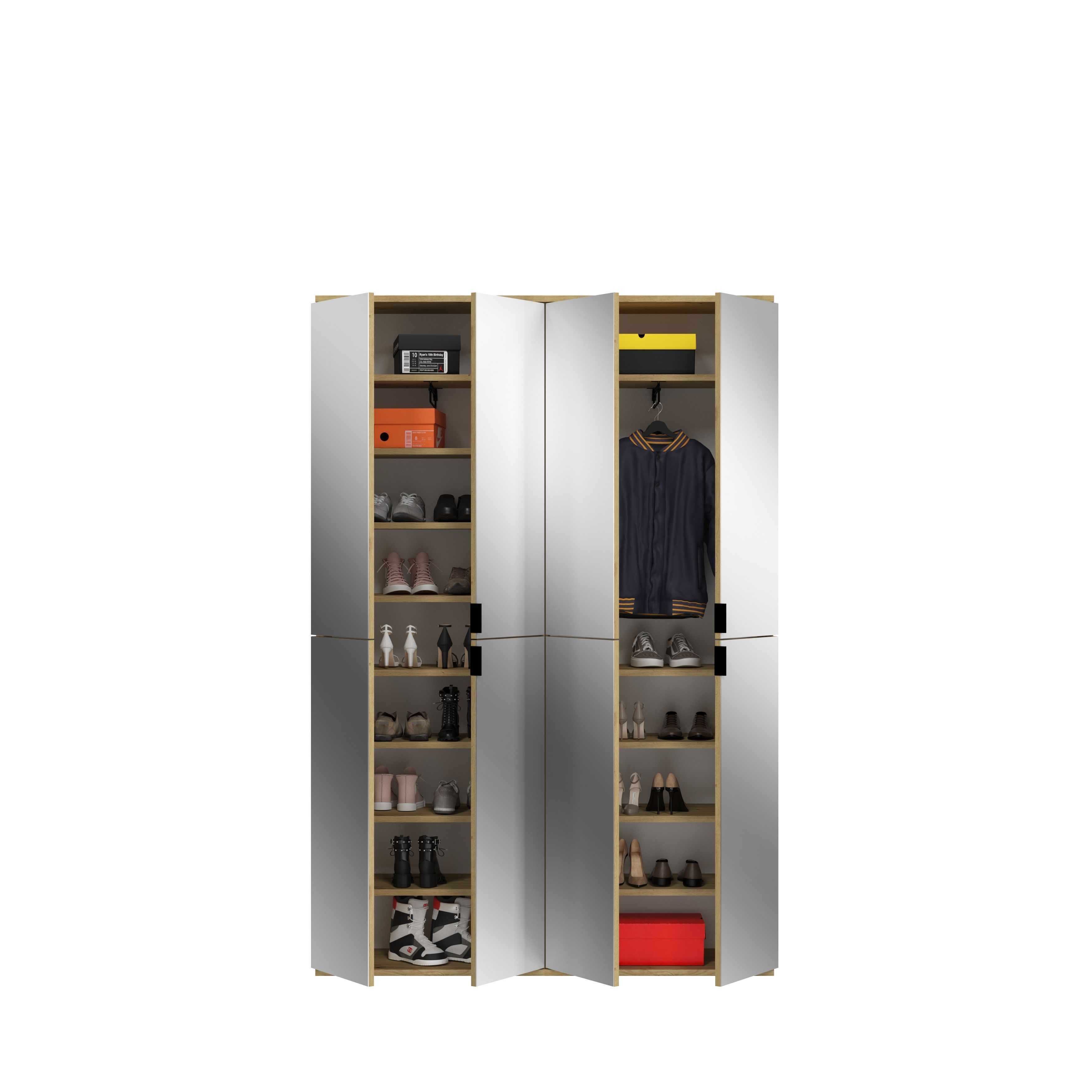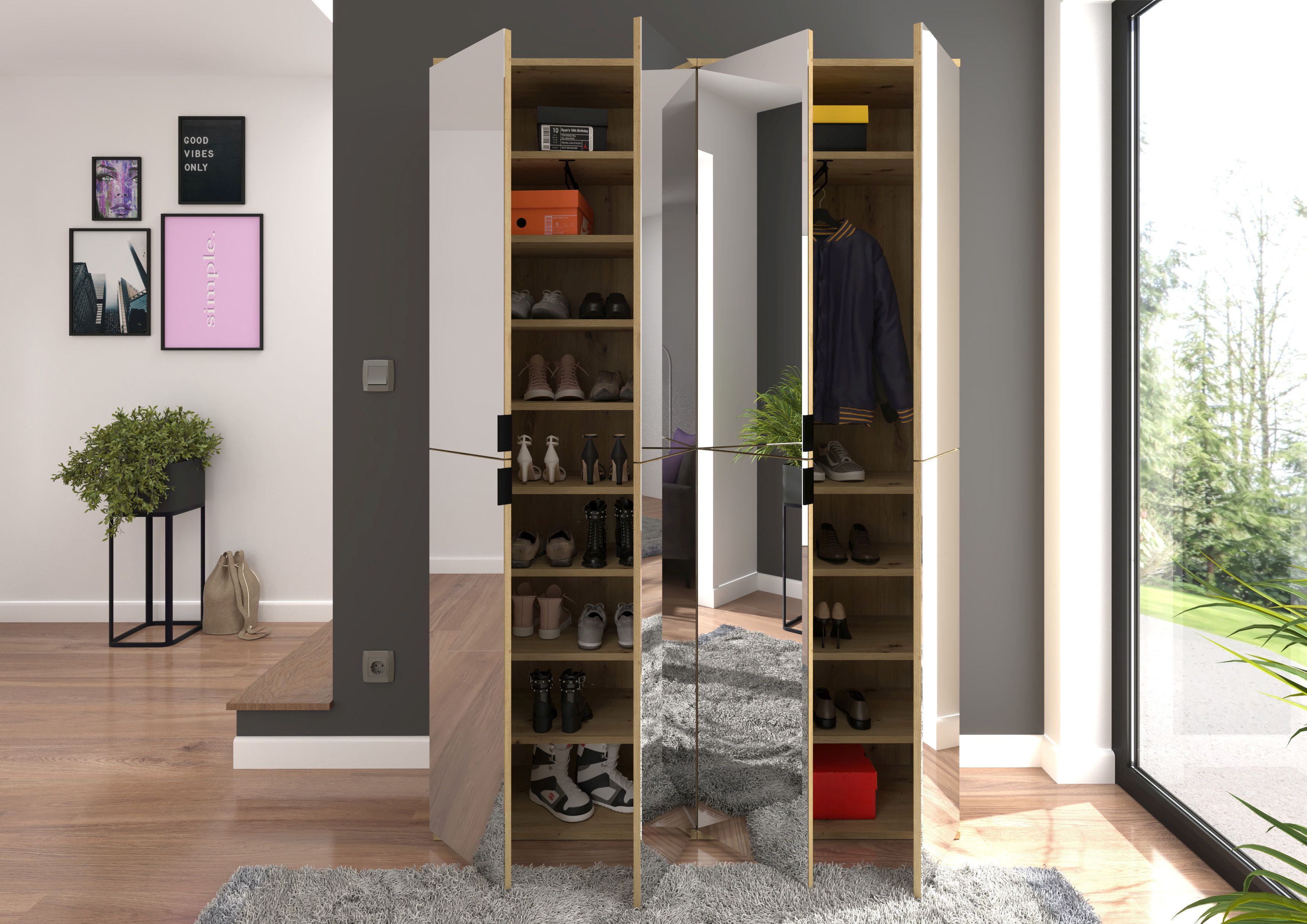 - Design/style : le vestiaire combiné décor chêne Artisan et miroir séduit par son élégance ultra tendance. Les portes miroir donnent au meuble un aspect attrayant et contemporain tandis que le décor chêne Artisan crée une impression de fraîcheur. Ce design simple et stylé s’adapte bien à différents styles d’intérieurs et confère à la pièce une ambiance claire et aérée.