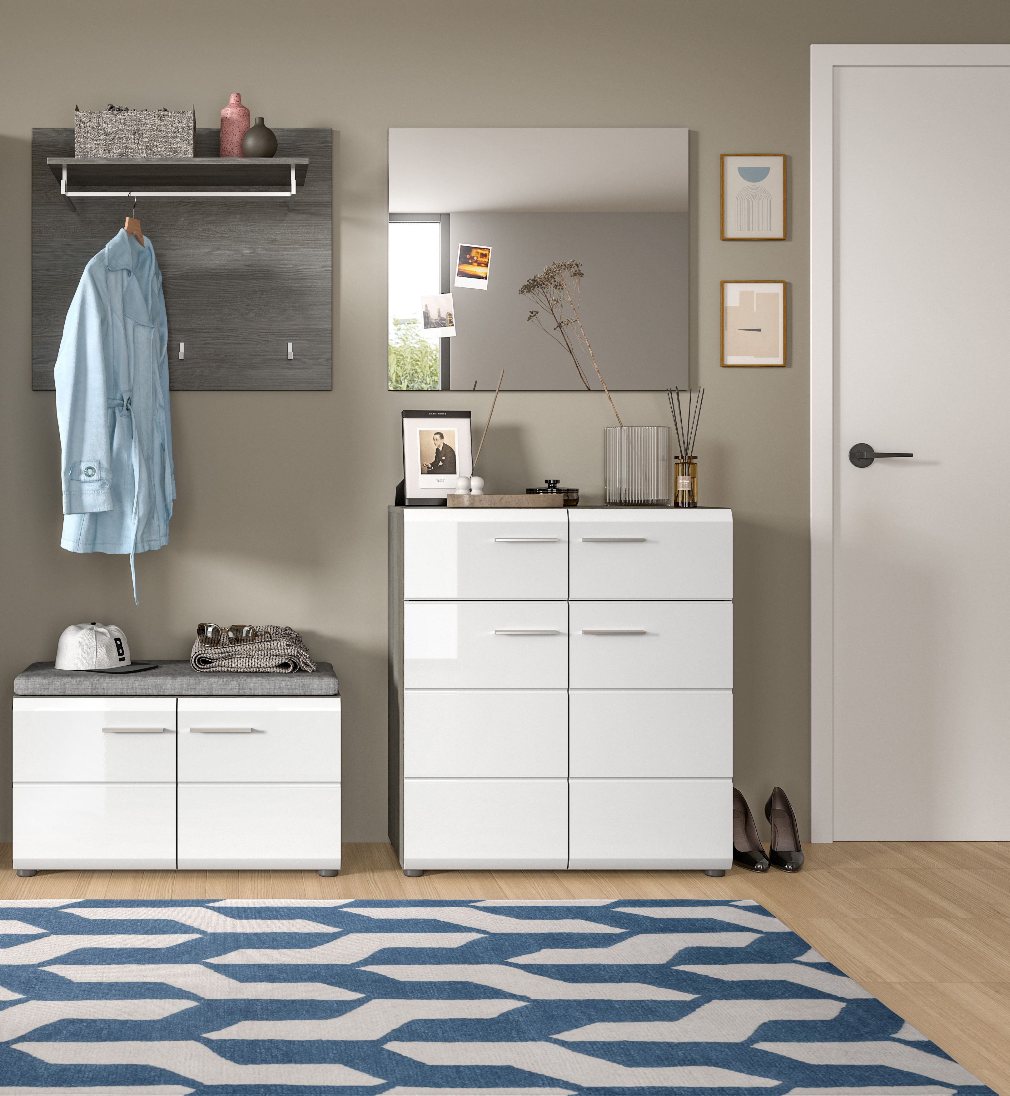 Envie d’un vestiaire combiné moderne et élégant décor argent fumé et finition ton blanc ultra brillant ? Dans notre boutique en ligne, vous trouverez précisément cela : un meuble qui permet d’organiser parfaitement votre entrée et lui apporte une touche d’élégance. Découvrez la parfaite harmonie entre style et fonctionnalité et enrichissez votre intérieur avec ce vestiaire combiné haut de gamme.