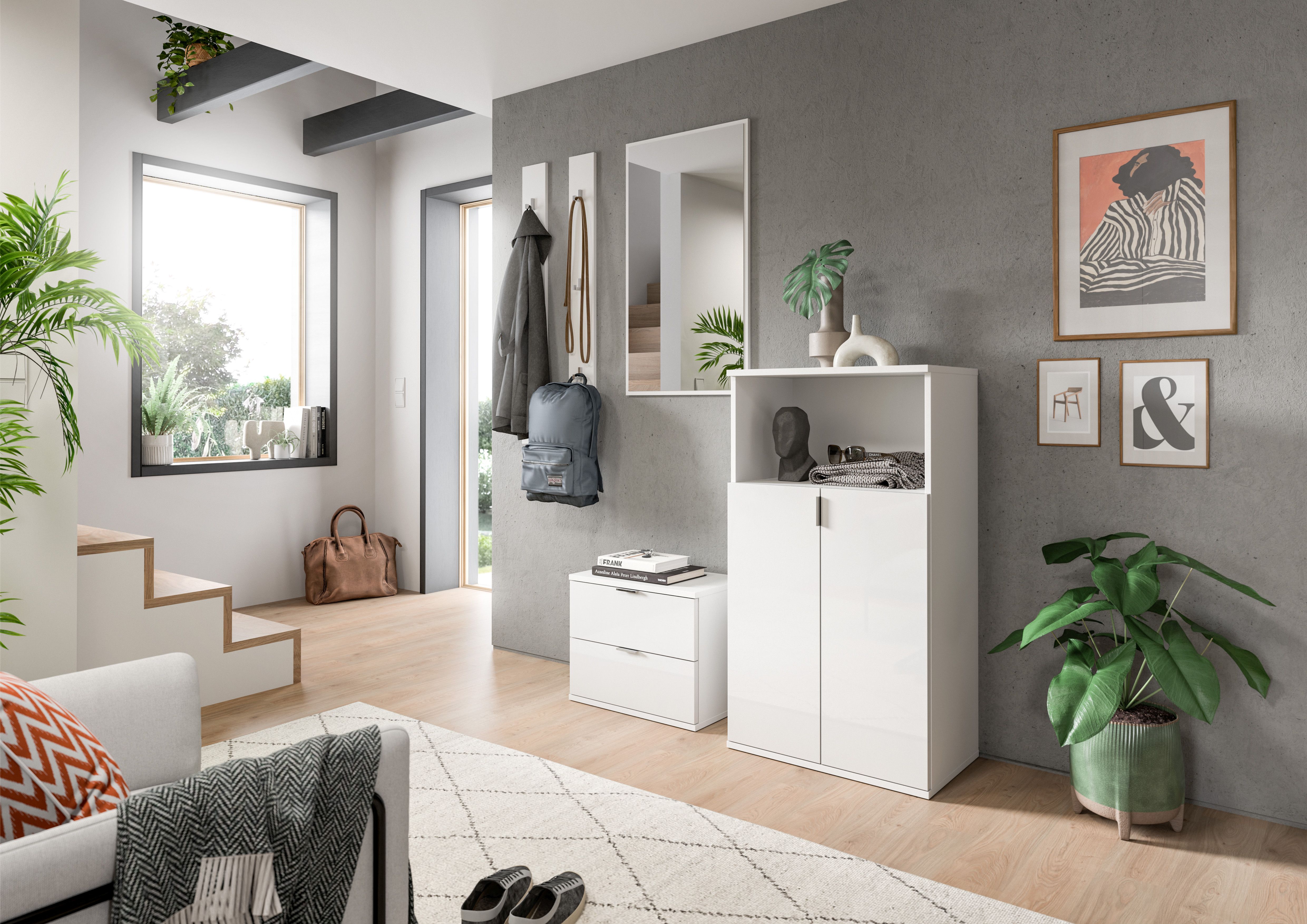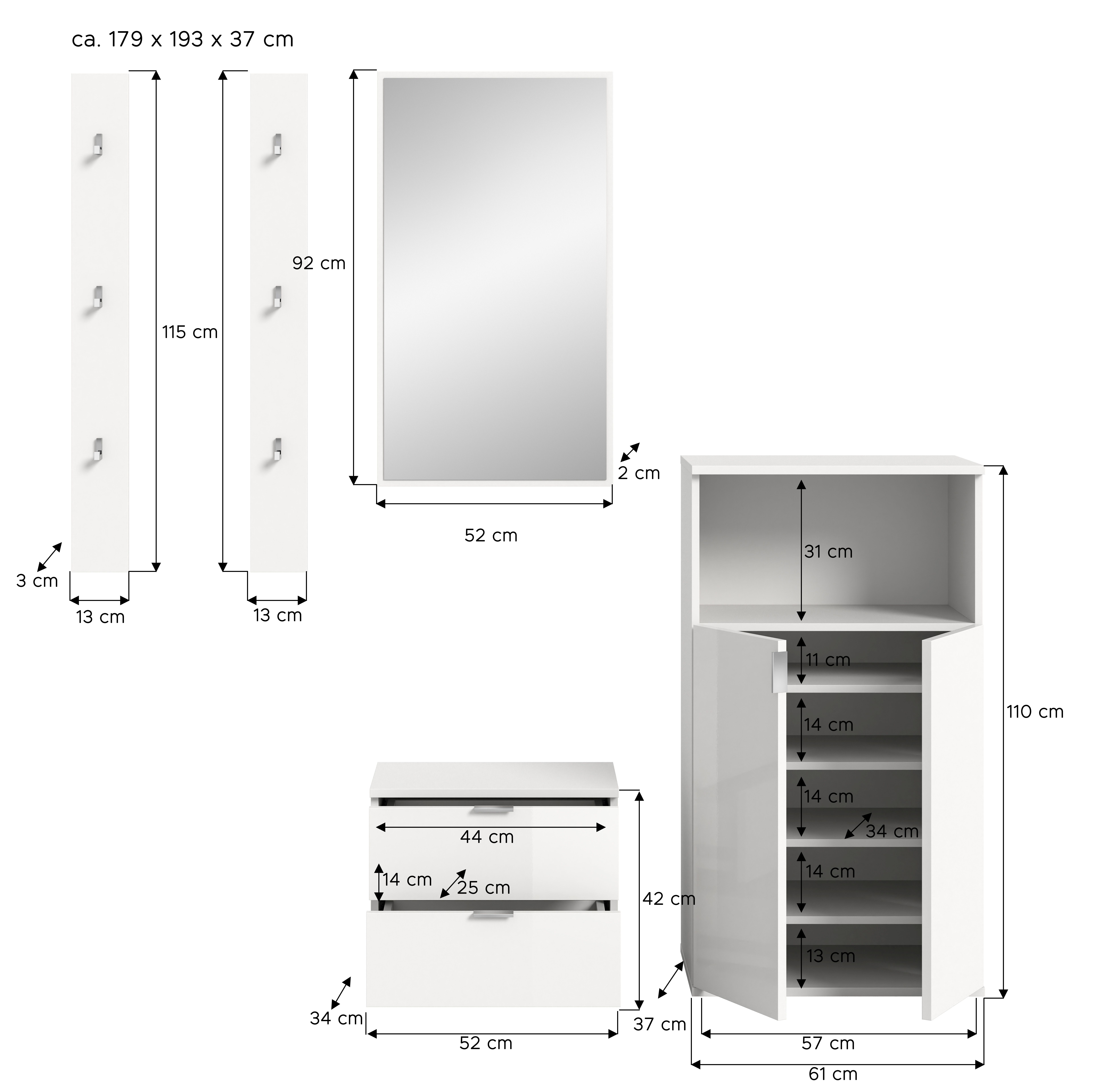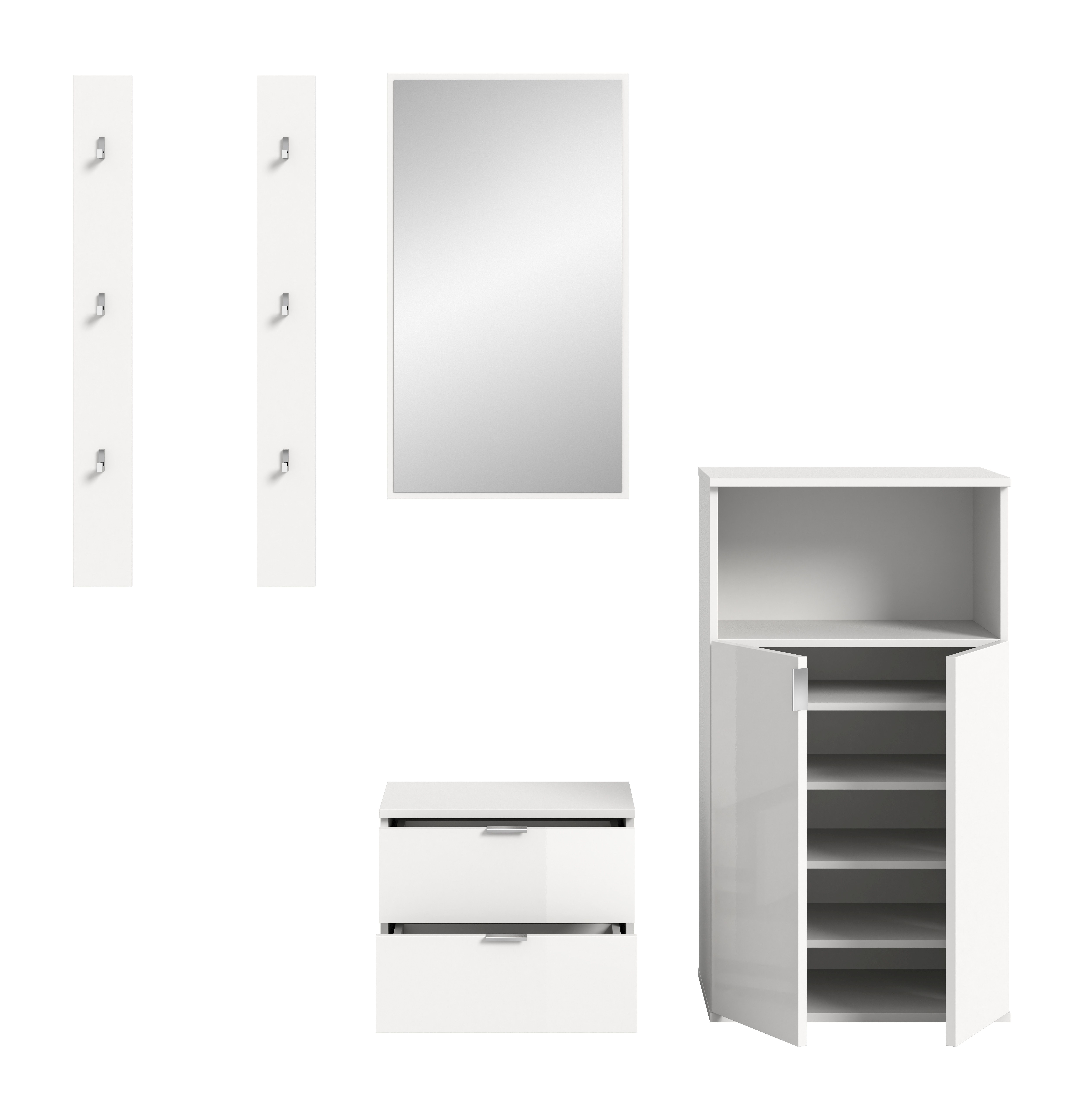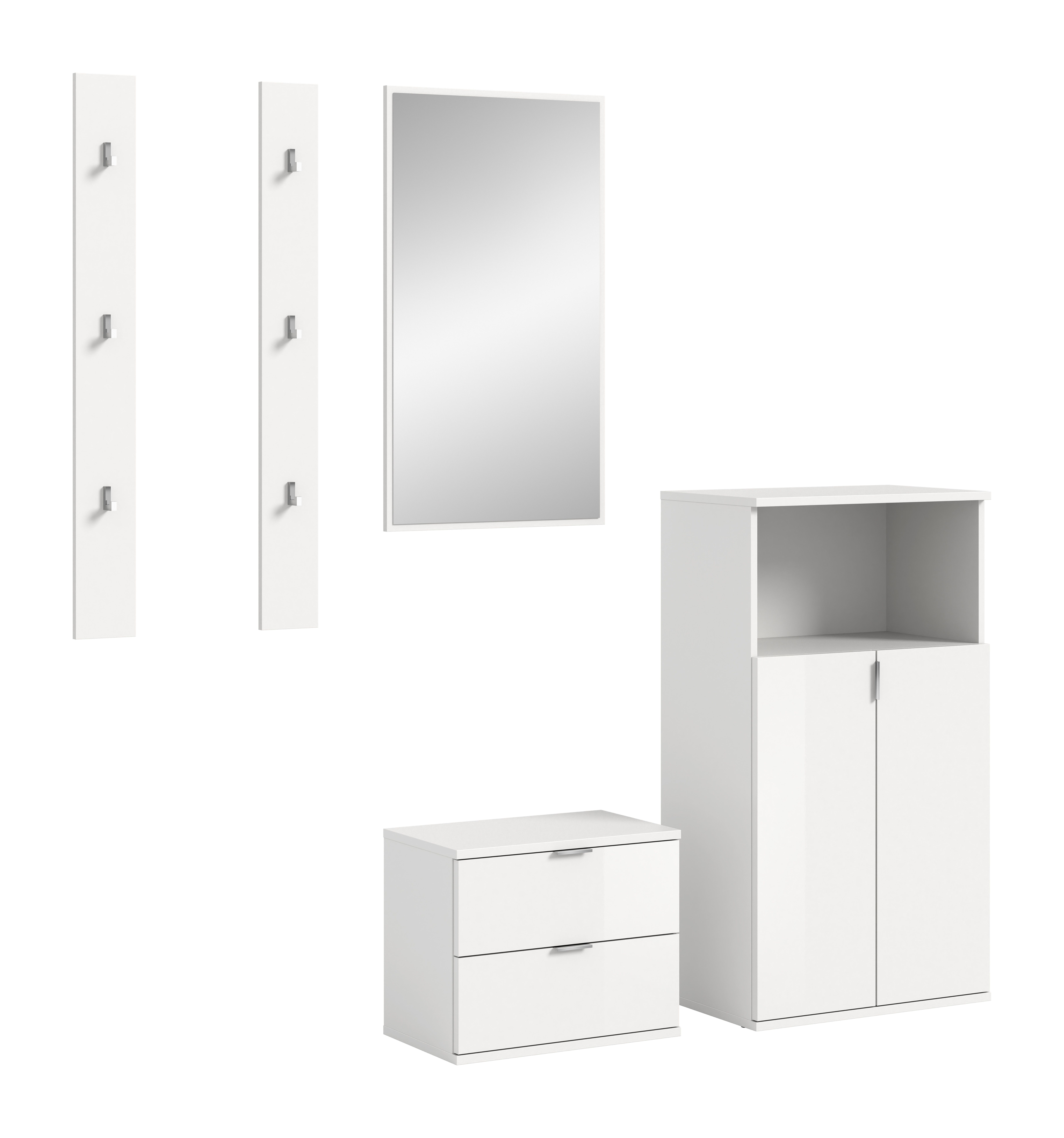 Apportez une touche de modernité à votre entrée grâce à notre vestiaire combiné ton blanc ultra brillant ! Avec ses dimensions généreuses (L 179 cm x H 191 cm x P 37 cm), cet ensemble offre des solutions pratiques pour aménager n’importe quel couloir. Il se compose d’un set de deux panneaux muraux pour suspendre facilement vestes et manteaux, d’un banc confortable avec tiroirs, d’un miroir élégant et d’un meuble à chaussures spacieux. Ce mix bien pensé allie style et fonctionnalité pour instaurer l’ordre dans votre intérieur. La finition ton blanc ultra brillant reflète la lumière et rend votre entrée plus lumineuse et accueillante. Idéal pour les familles et les intérieurs contemporains !