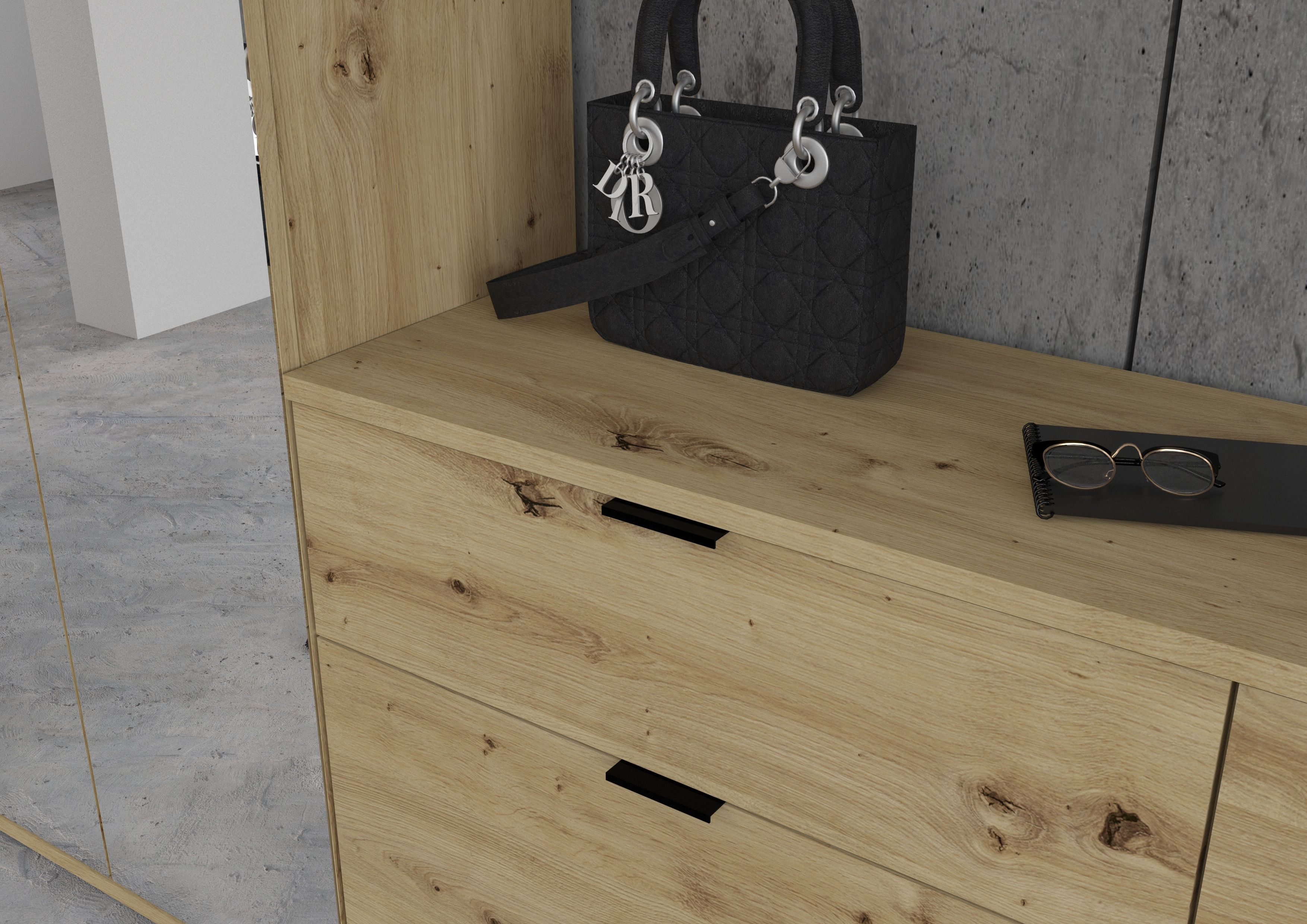 - Design/style : le vestiaire combiné décor chêne Artisan et miroir séduit par son élégance ultra tendance. Le décor chêne Artisan donne au meuble un aspect attrayant et contemporain. Ce design simple et stylé s’adapte bien à différents styles d’intérieurs et confère à la pièce une ambiance claire et aérée.