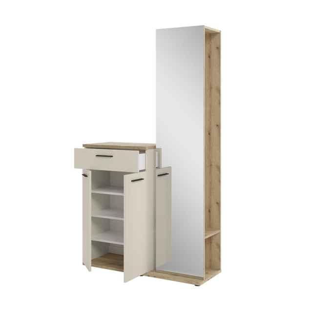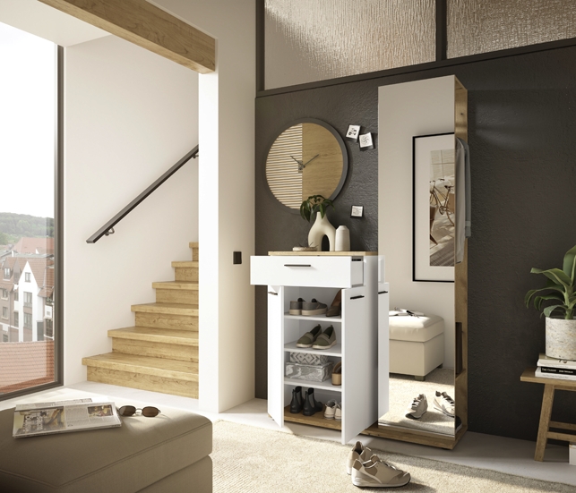 1 meuble à chaussures avec 2 portes, 1 tiroir et 3 tablettes amovibles pour env. 8-10 paires de chaussures