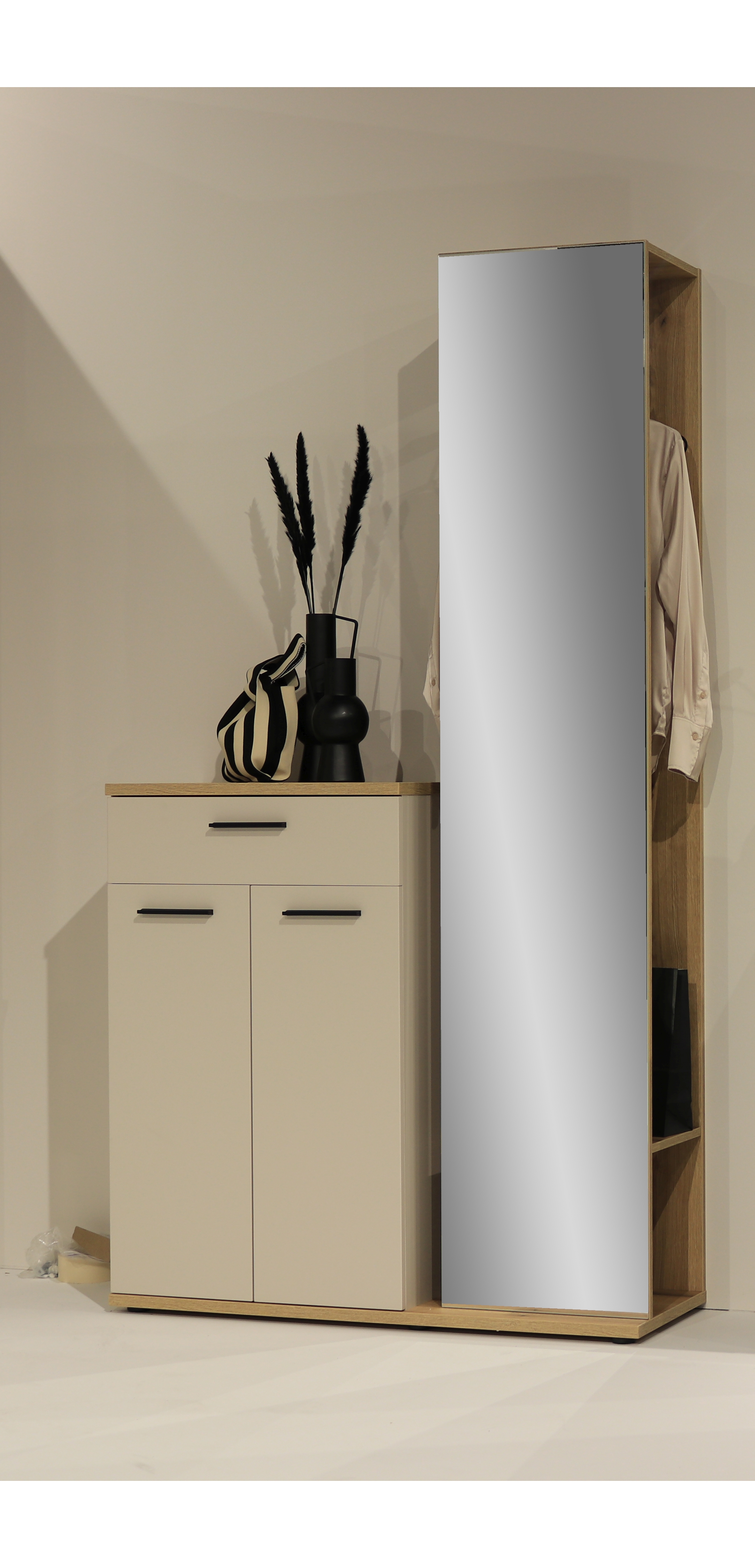 Façade : cachemire et décor chêne Evoke, panneau de particules surfacé mélaminé (PPSM) / miroir