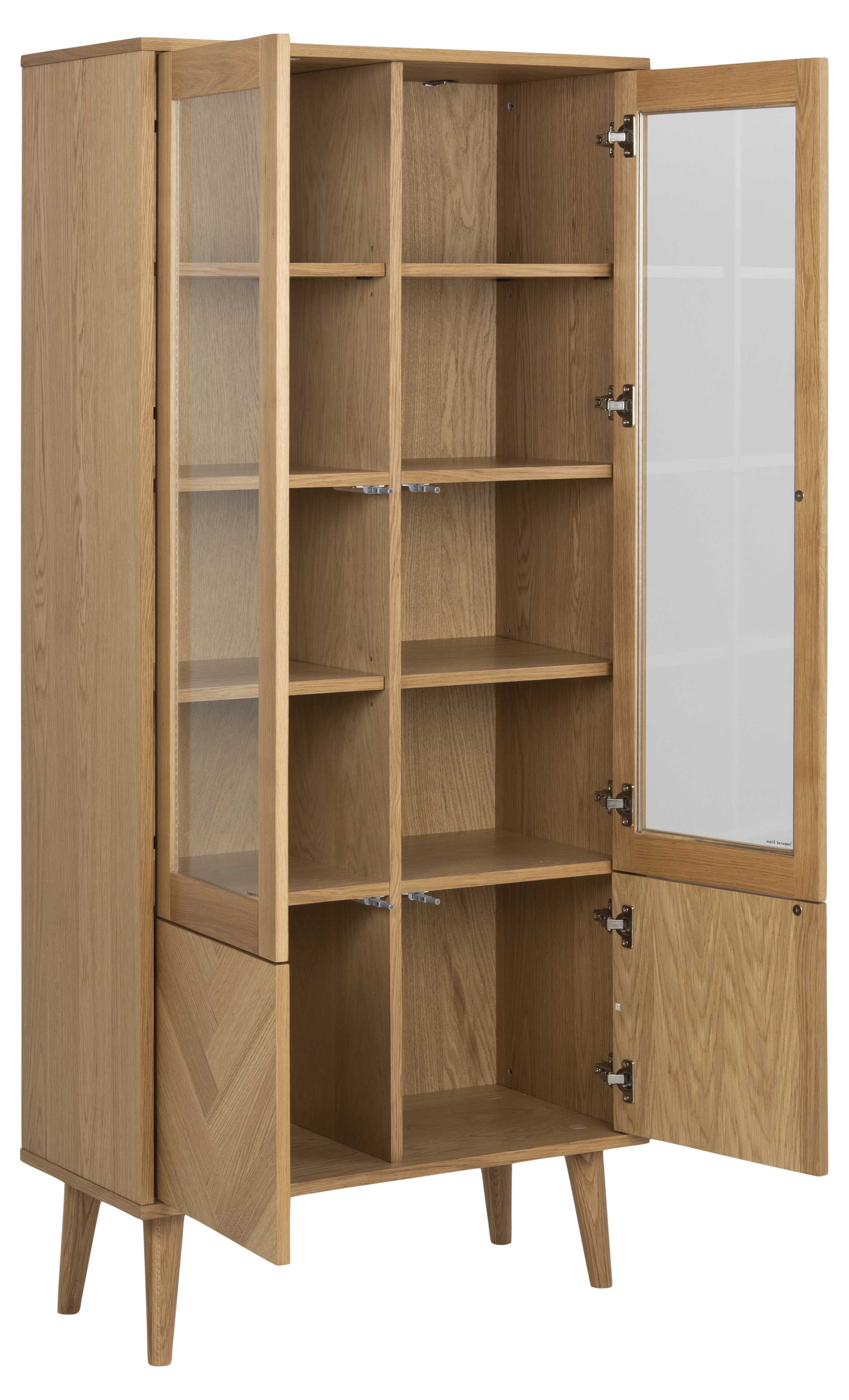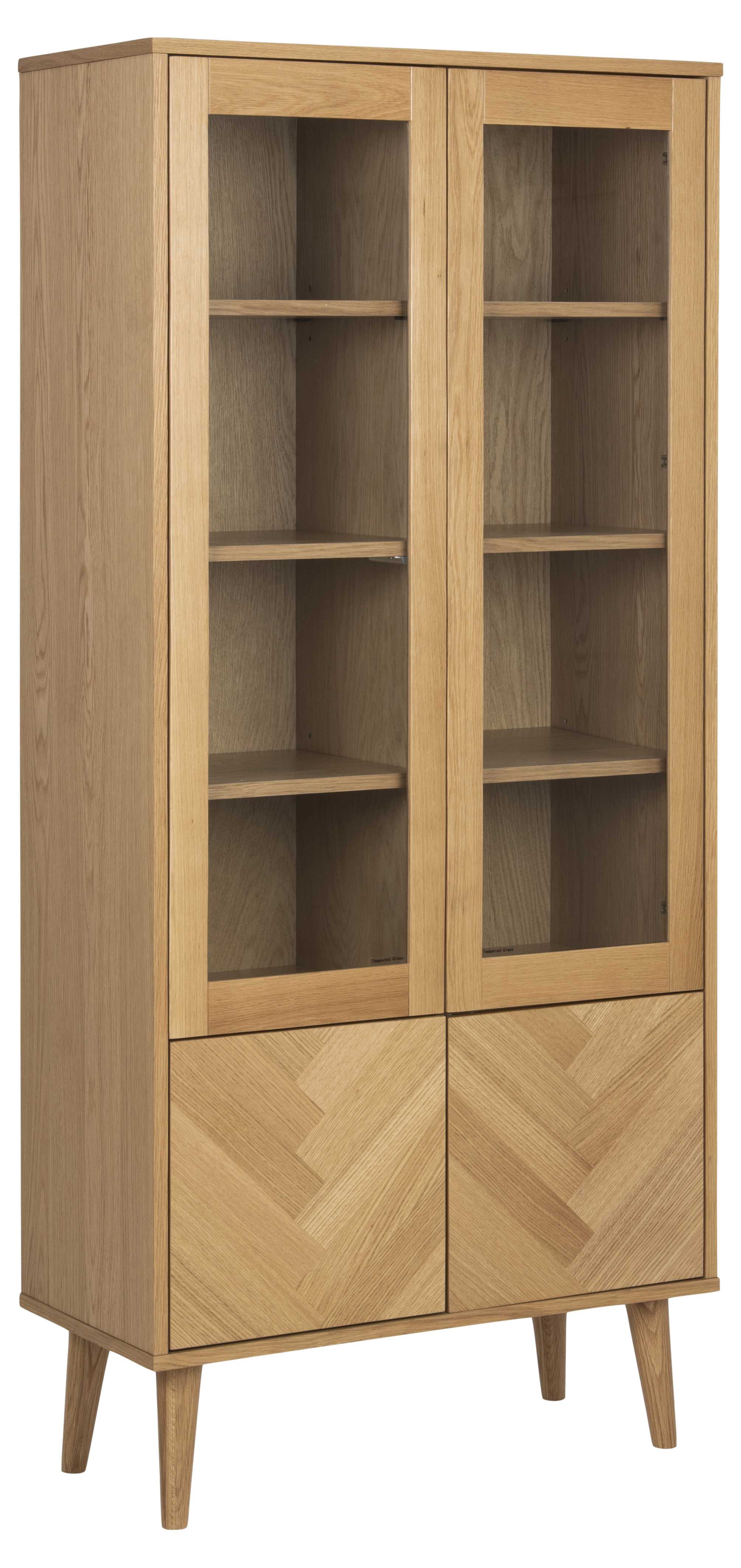 Caisson et façade : placage chêne (Chine), laqué / verre