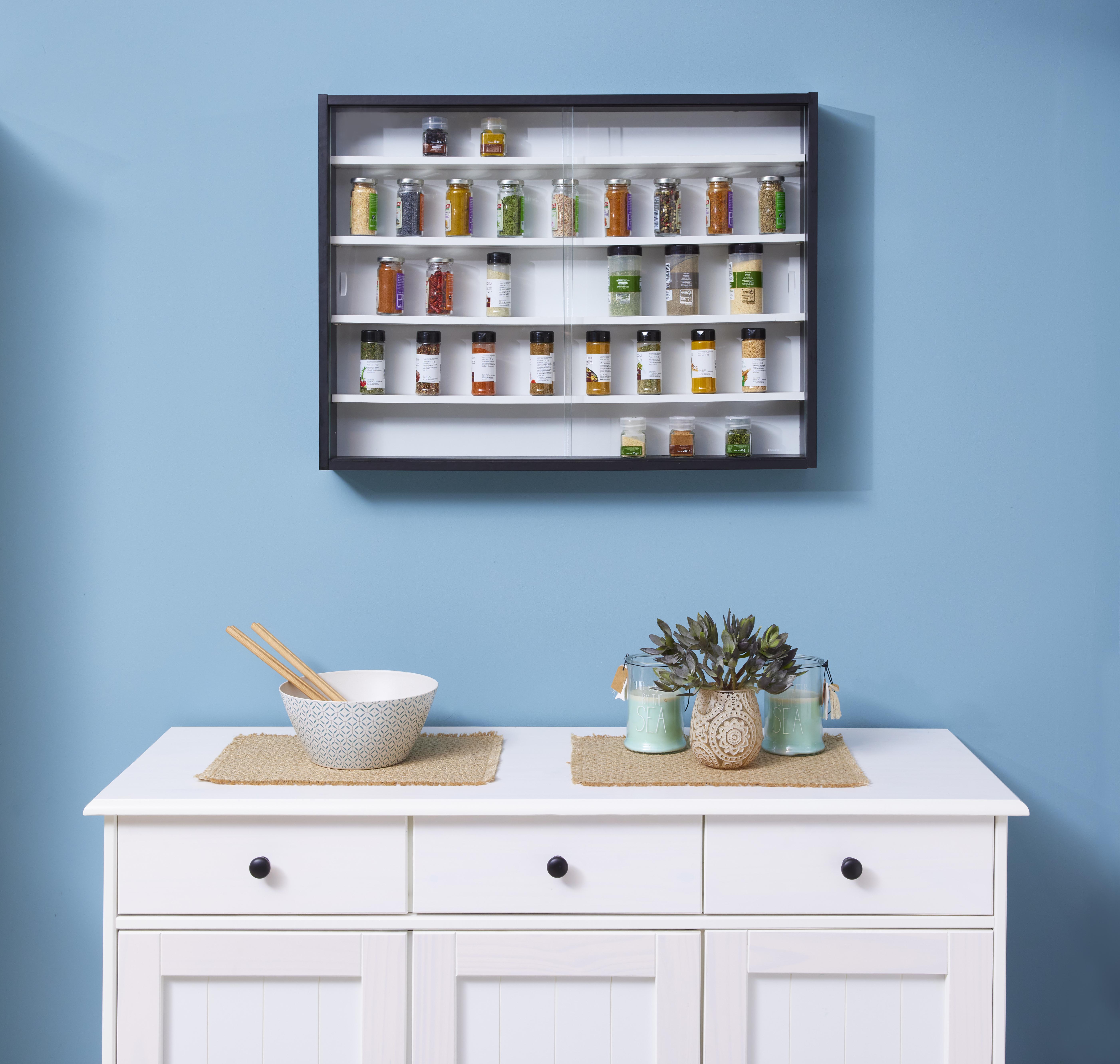 Dans la cuisine, elle offre du rangement pour petits bocaux, tasses, dosettes de café ou pots à épices.